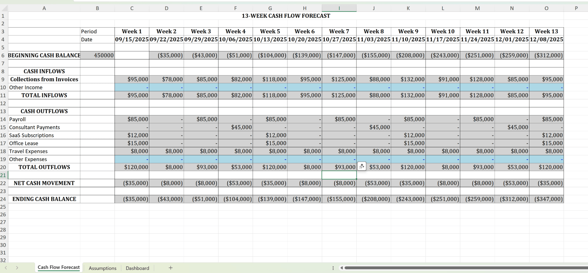 1. 13-Week Cash Flow Forecast (Professional Services)