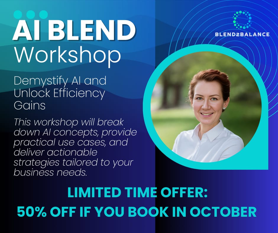 Book your AI Blend Workshop this October and enjoy an exclusive 50% discount—available for a limited time!