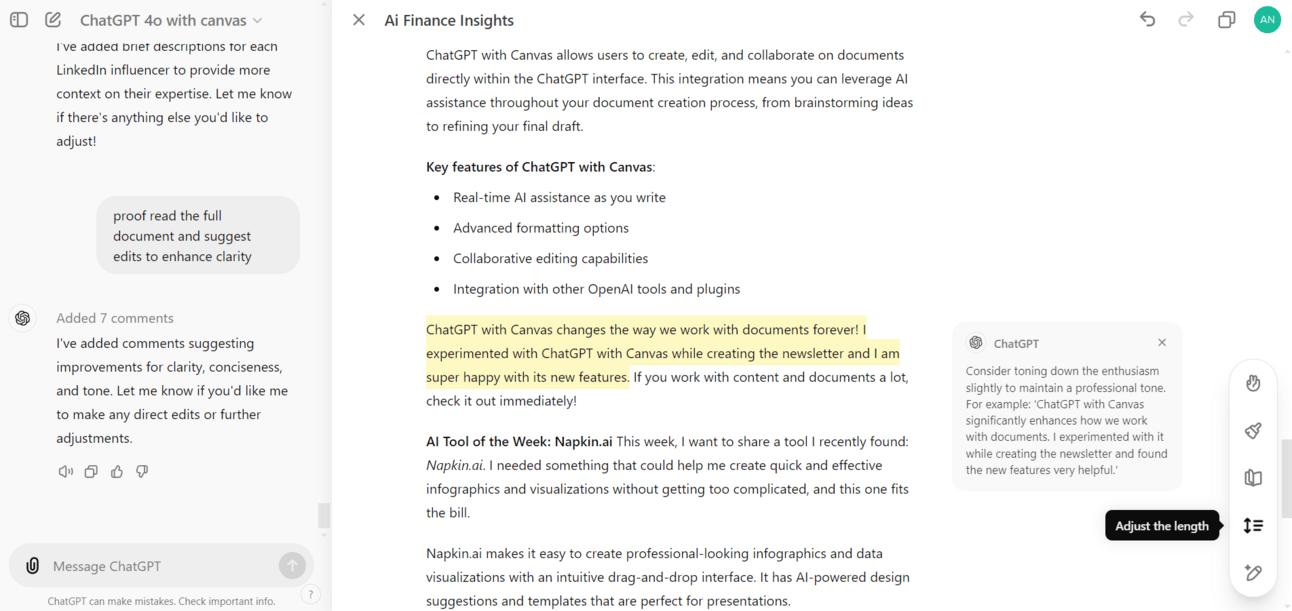 ChatGPT with Canvas significantly enhances how we work with documents. I experimented with it while creating the newsletter and found the new features very helpful. If you work with content and documents a lot, check it out immediately!